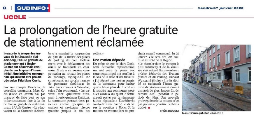 Le Conseil communal a dopté le 26/11/2020 à l'unianimité, et à l'initiative de Marc Cools, Chef de Groupe d'Uccle En Avant, une motion relative au